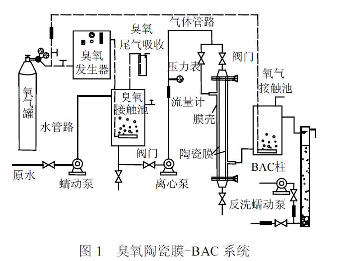 膜工藝在飲用水處理中的應用日益增多,其對水中顆粒物有很好的分離能力,膜出水濁度一般在0.2NTU 以下,在水處理中有很大的應用潛力.但實踐證明,膜的污染和膜工藝無法有效去除溶解性有機物和氨氮,阻礙了其廣泛應用.陶瓷膜具有機械強度高、化學穩定性和熱穩定性高等優點.陶瓷膜能夠與臭氧直接接觸,可有效控制膜污染.臭氧氧化在控制膜污染的同時還能降低有機物的分子量,提高其可生化性.但有報道指出,臭氧氧化可降低膜對的有機物的去除效果.為提高膜對有機物的去除,通常在膜工藝前設置粉末活性炭或顆粒活性炭等預處理工藝.預處理工藝能夠改變水中顆粒物和有機物的賦存形態,降低膜的有機物負荷,減輕膜污染,提高有機物的去除效果.但此類預處理工藝多利用了活性炭的吸附作用,且對氨氮的去除無顯著改善.研究表明,生物活性碳(BAC)可有效去除水中的有機物和氨氮.因此,在臭氧-陶瓷膜后設置BAC工藝,形成臭氧陶瓷膜-BAC組合工藝,可在臭氧控制膜污染的基礎上去除有機物和氨氮,能夠一舉兩得.